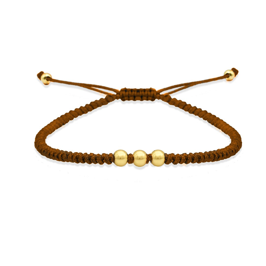 MEN'S THREE BEADED STRING GOLD BRACELET