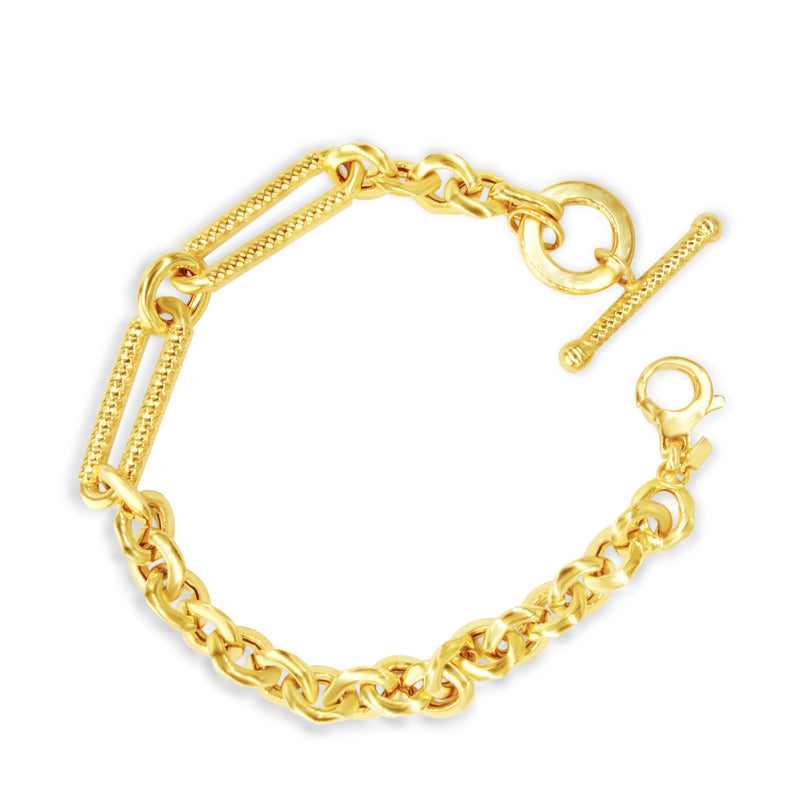 T-BAR COFFEE BEAN-CHAIN GOLD BRACELET