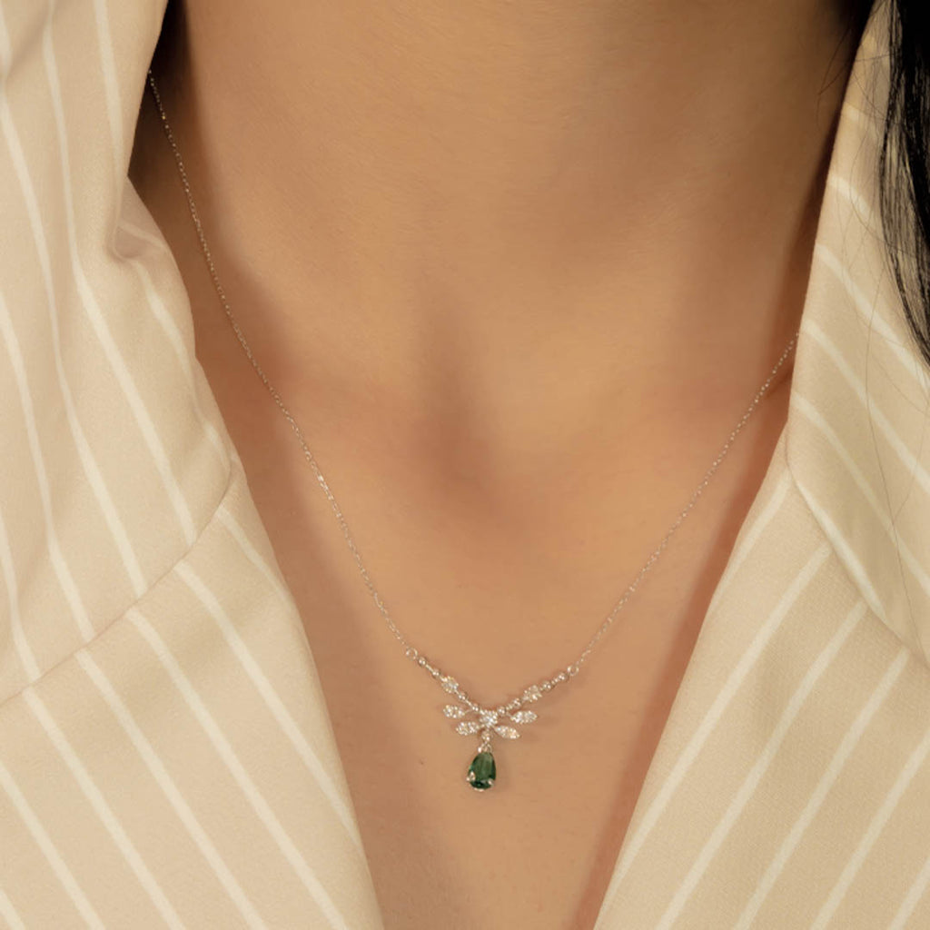 ONE DROPPED PEAR STONE DIAMOND NECKLACE