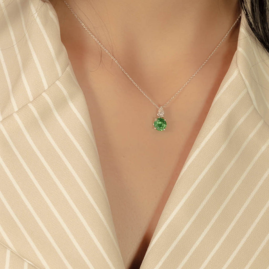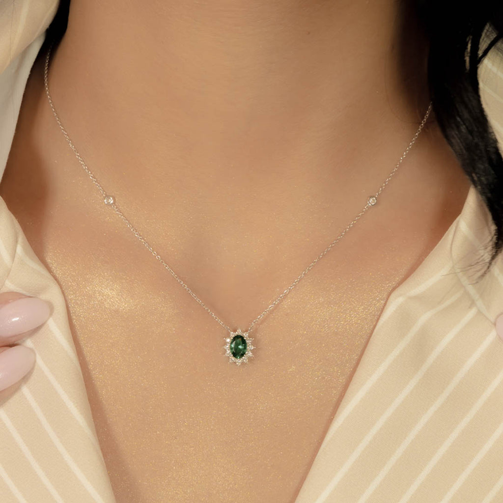 ROUND EMERALD DROP STONE DIAMOND NECKLACE