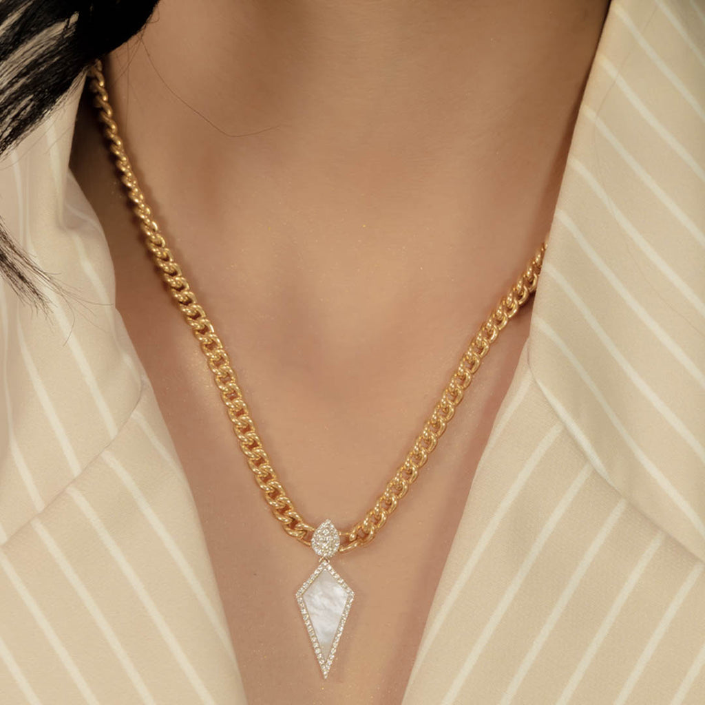 RHOMBUS IN CUBAN CHAIN DIAMOND NECKLACE