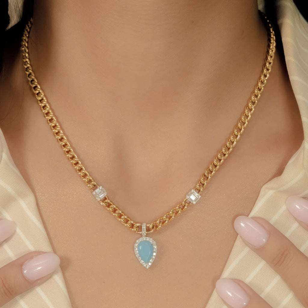 PEAR IN CUBAN CHAIN DIAMOND NECKLACE