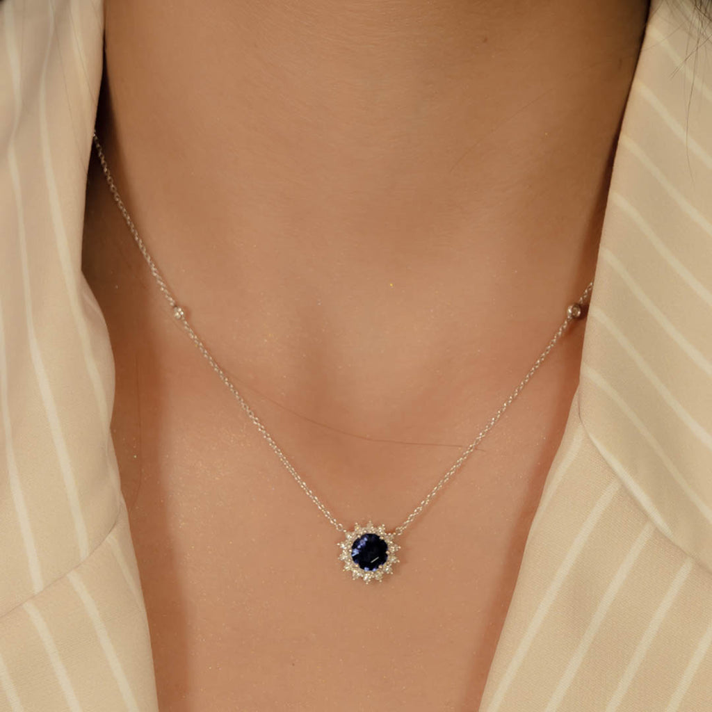 STUNNING FRAMED OVAL STONE DIAMOND NECKLACE