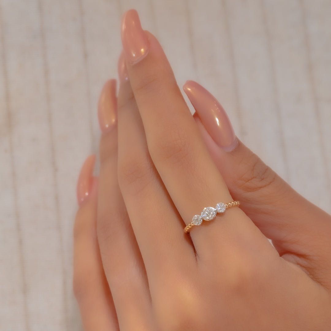 Add some sparkle to your hand with our TRIO ROUNDED DIAMOND RING! This quirky and playful piece features three rounded diamonds, sure to catch the eye and bring a smile to your face. Express your unique style with this fun and trendy ring!