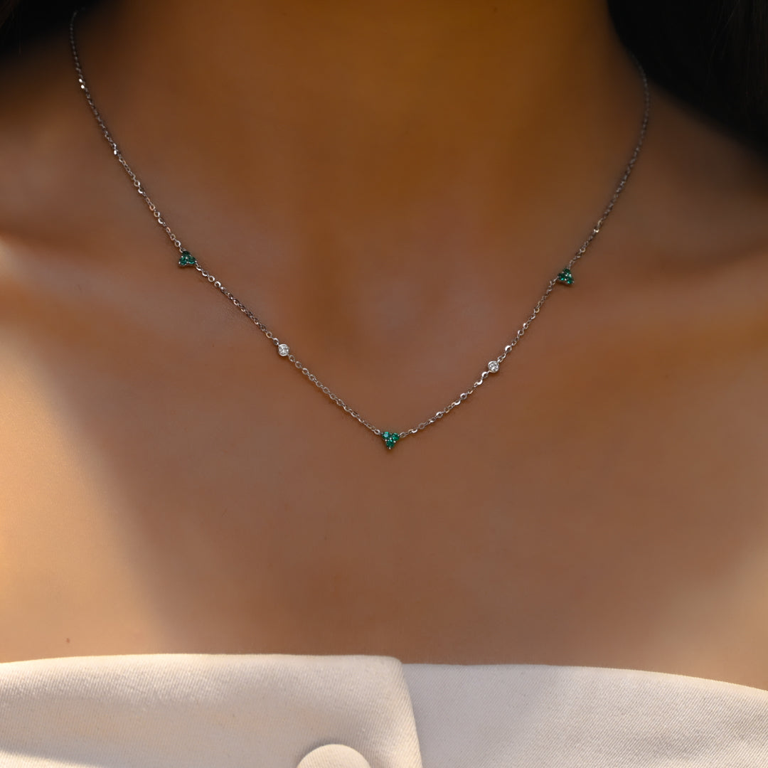 TRIO EMERALD STONED DIAMOND NECKLACE