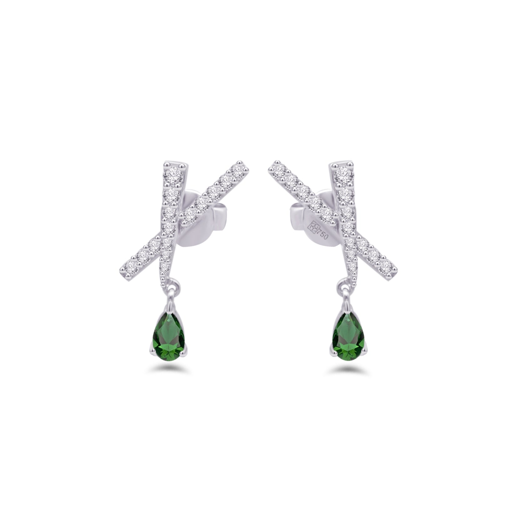 EMERALD X-SHAPE STUD DIAMOND EARRING