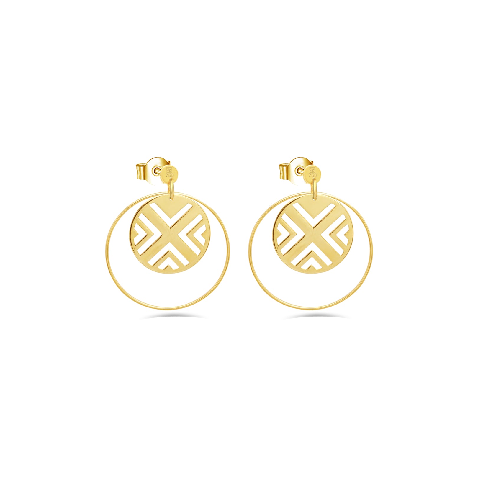 ENGRAVED DUO-CIRCLE STUD GOLD EARRING