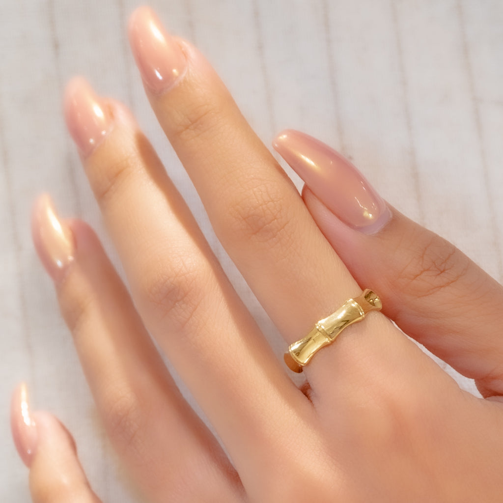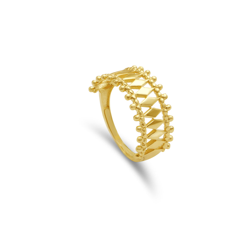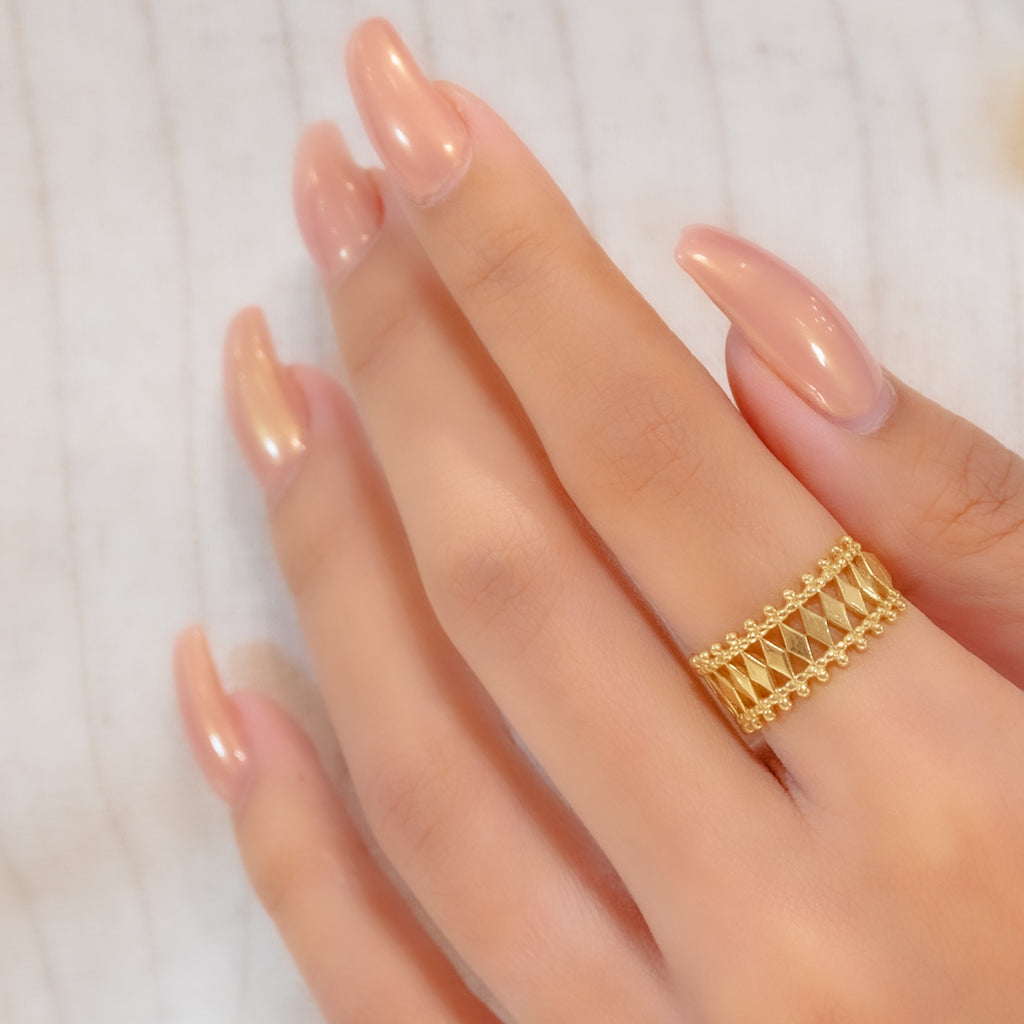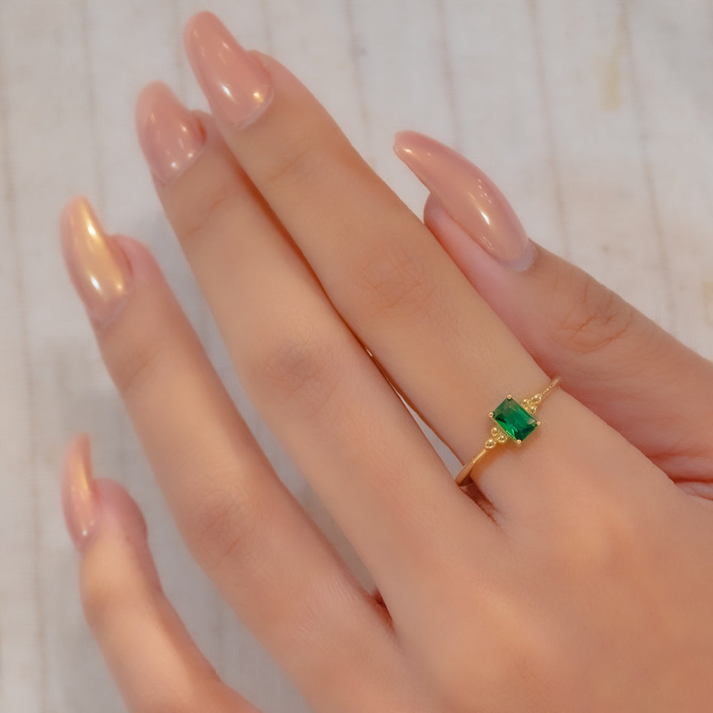 RECTANGULAR STONE WITH BEADS GOLD RING