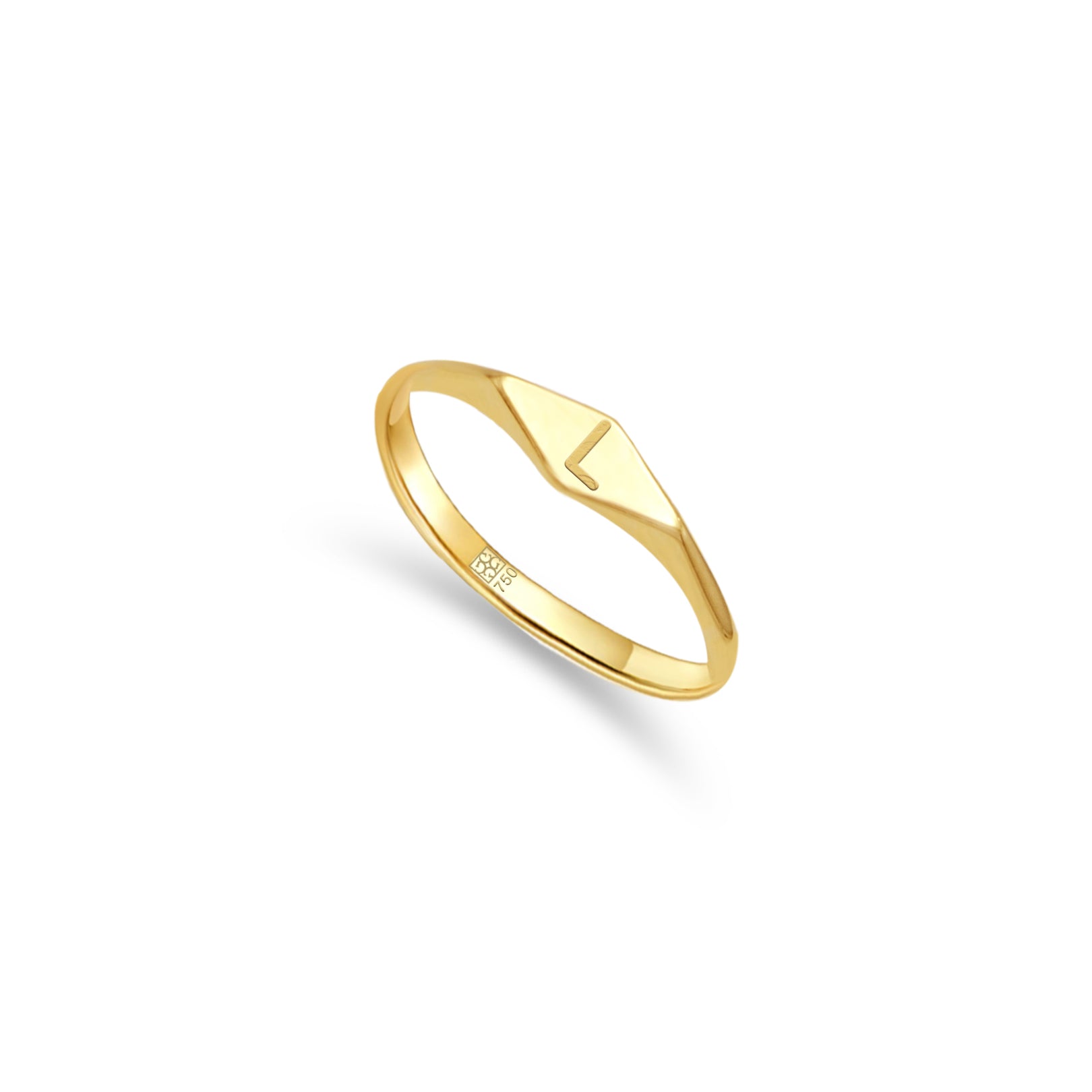 RHOMBUS ENGRAVED INITIAL GOLD RING