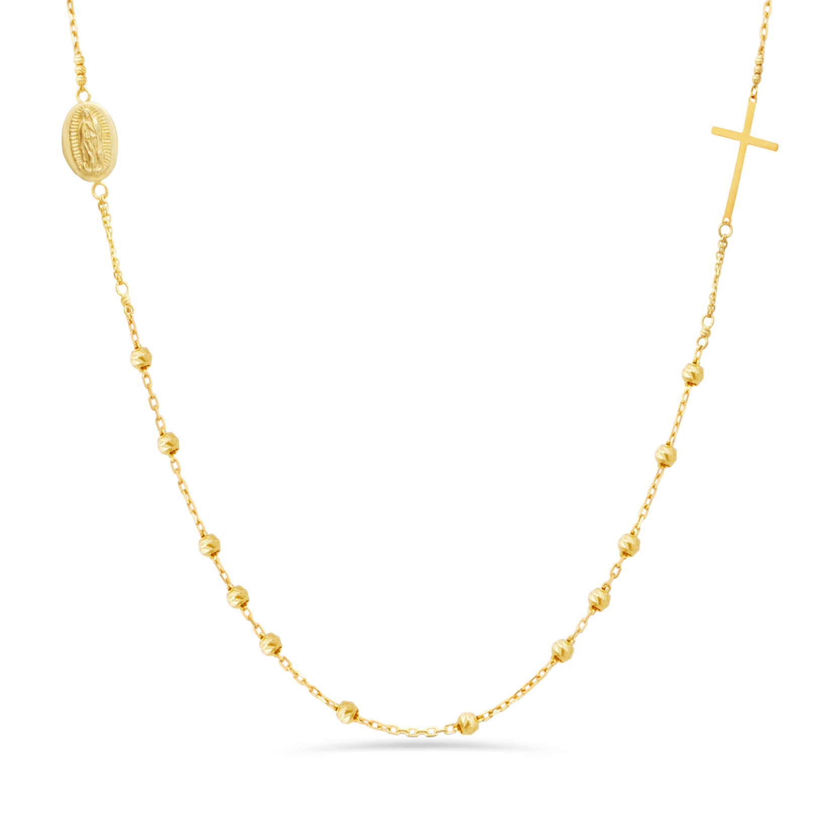 The delicate cross pendant paired with traditional rosary beads creates a meaningful statement that works beautifully for daily wear or special occasions. Perfect for those seeking to express their devotion with grace and sophistication. A cherished addition to any jewelry collection that speaks to both the heart and the soul.