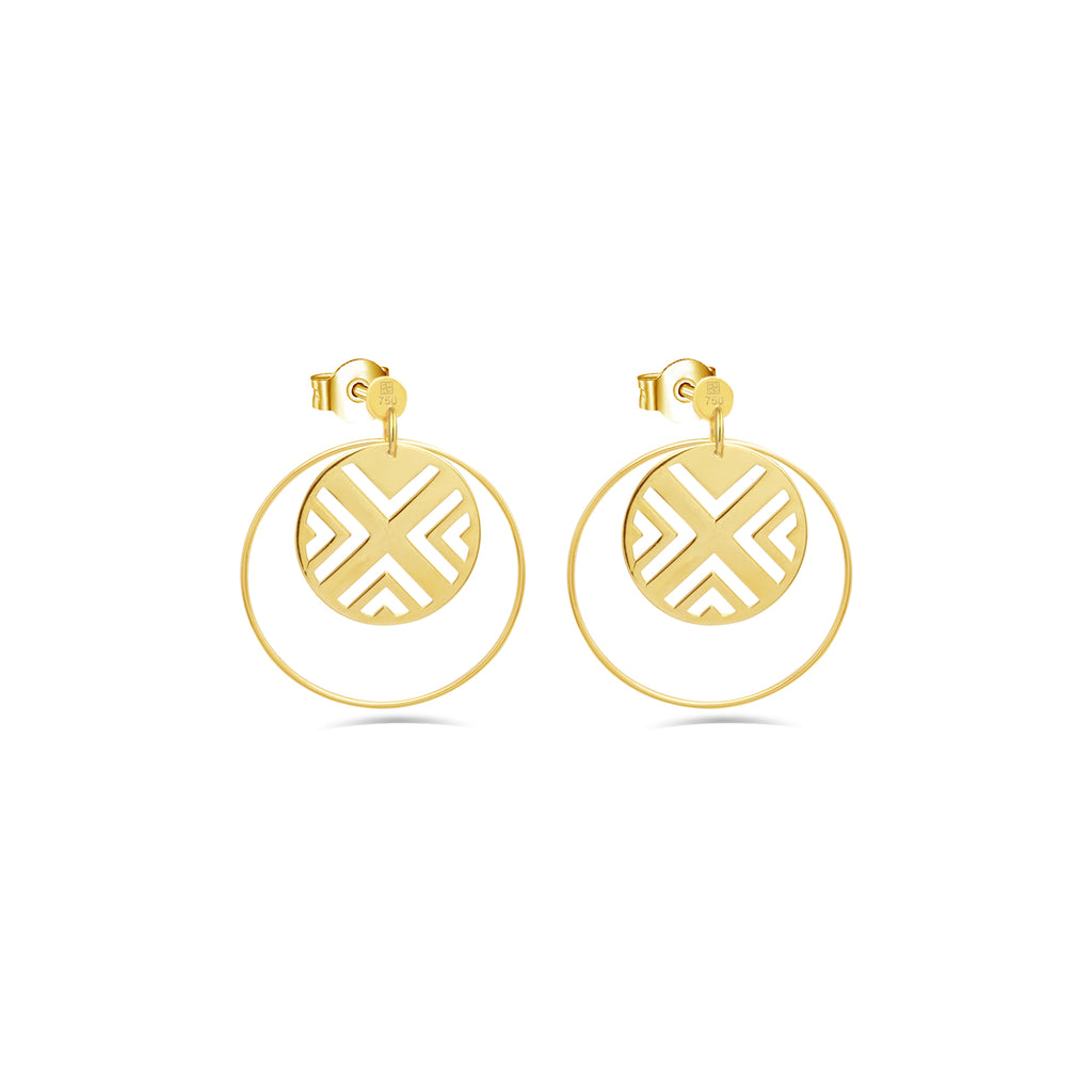 LINKED CIRCLE & CHAINS STUD GOLD EARRING