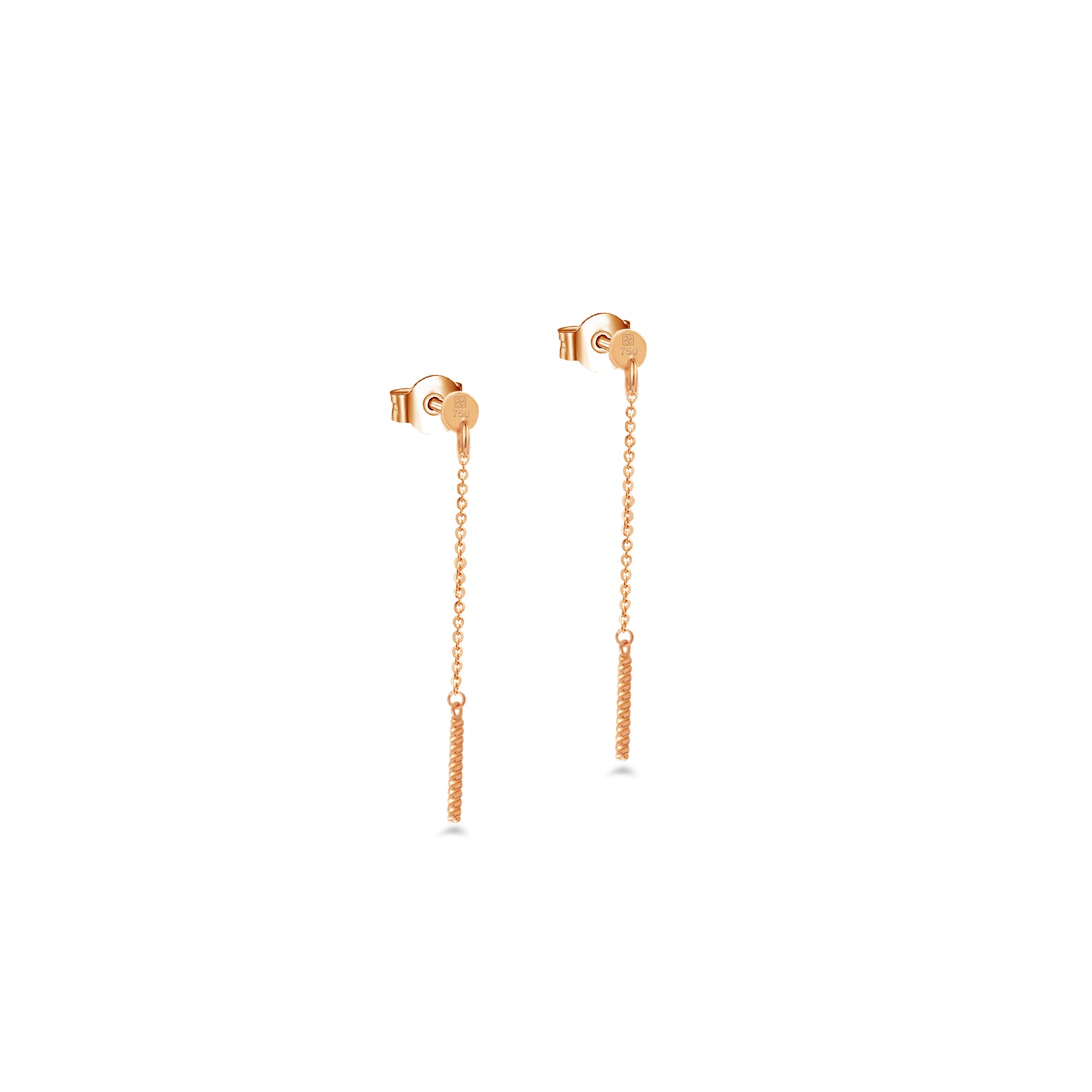 DANGLE ROSE ROPED CHAIN STUD GOLD EARRING
