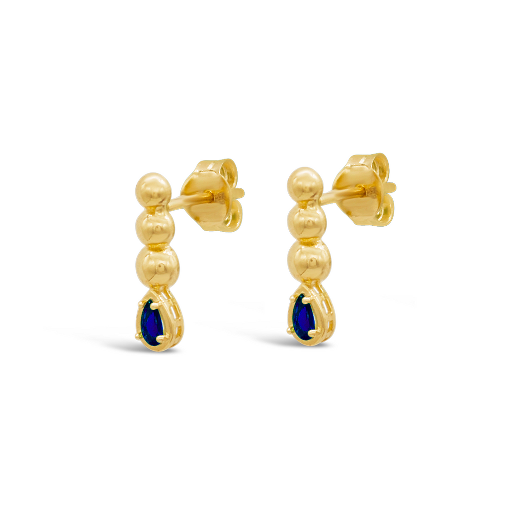 PEAR COLOURED STONE BEADS STUD GOLD EARRING