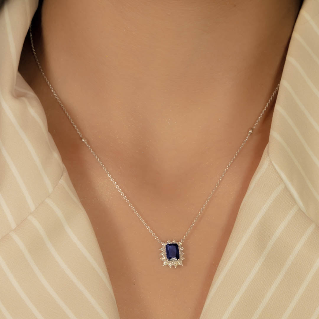 Get ready to stun with this Framed RECTANGLE Stone Diamond Necklace! Featuring a beautiful square stone surrounded by dazzling diamonds, this necklace is the perfect accessory for adding some glamour to any outfit.