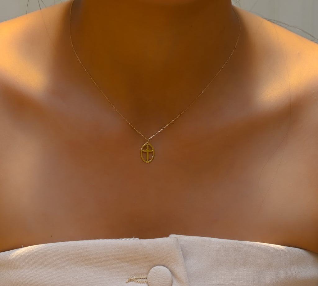PLAIN FRAMED DROPPED LETTERS GOLD NECKLACE