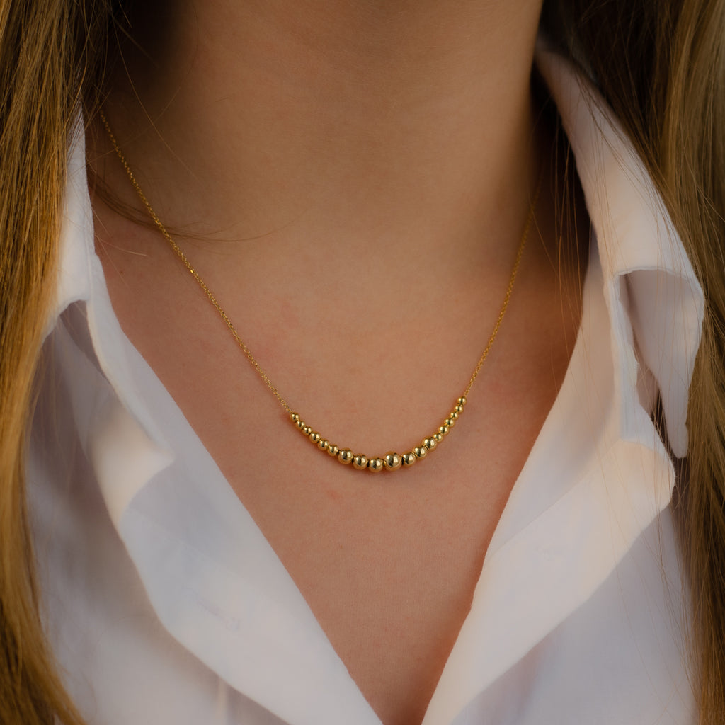 TINY OVALS WITH BEADS GOLD NECKLACE