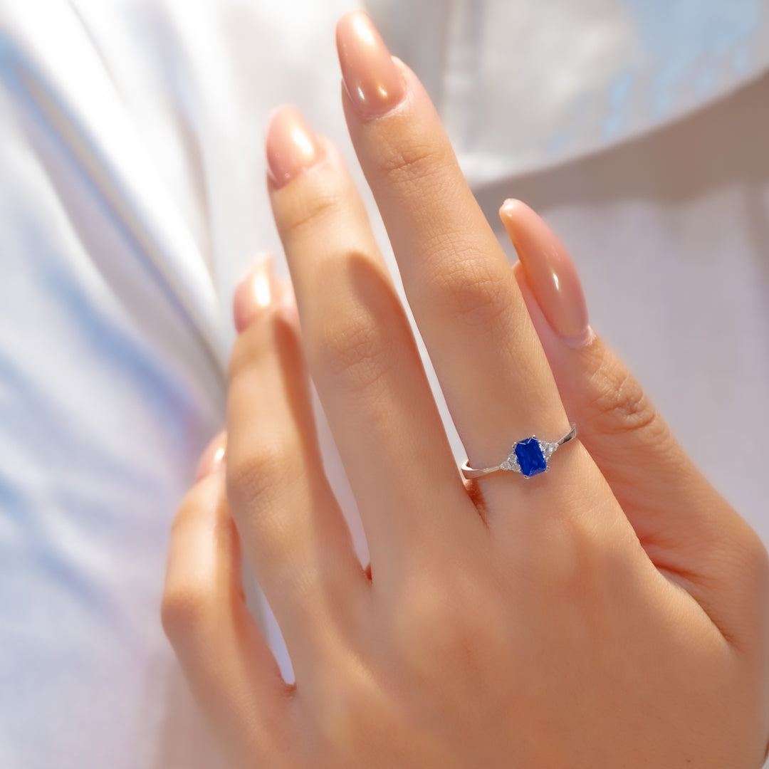 Take a daring leap with this stunning CLASSIC SAPPHIRE DIAMOND RING. Featuring a mesmerizing sapphire stone surrounded by sparkling diamonds, this ring is the perfect blend of elegance and adventure. Make a bold statement and add a touch of luxury to any outfit.