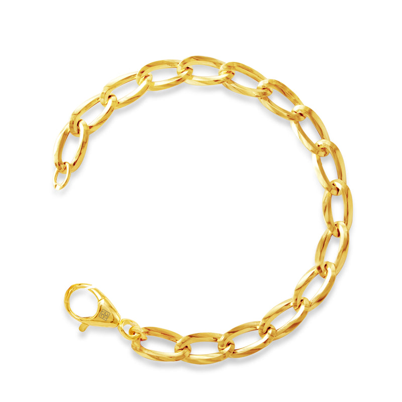 Add some whimsy to your outfit with our Flat Paperclip Gold Bracelet. This playful piece features a unique and quirky design that will surely make a statement. Perfect for any occasion, this bracelet is both stylish and fun.