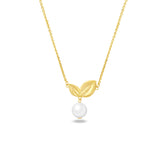 LEAFS WITH DROPPED PEARL GOLD NECKLACE