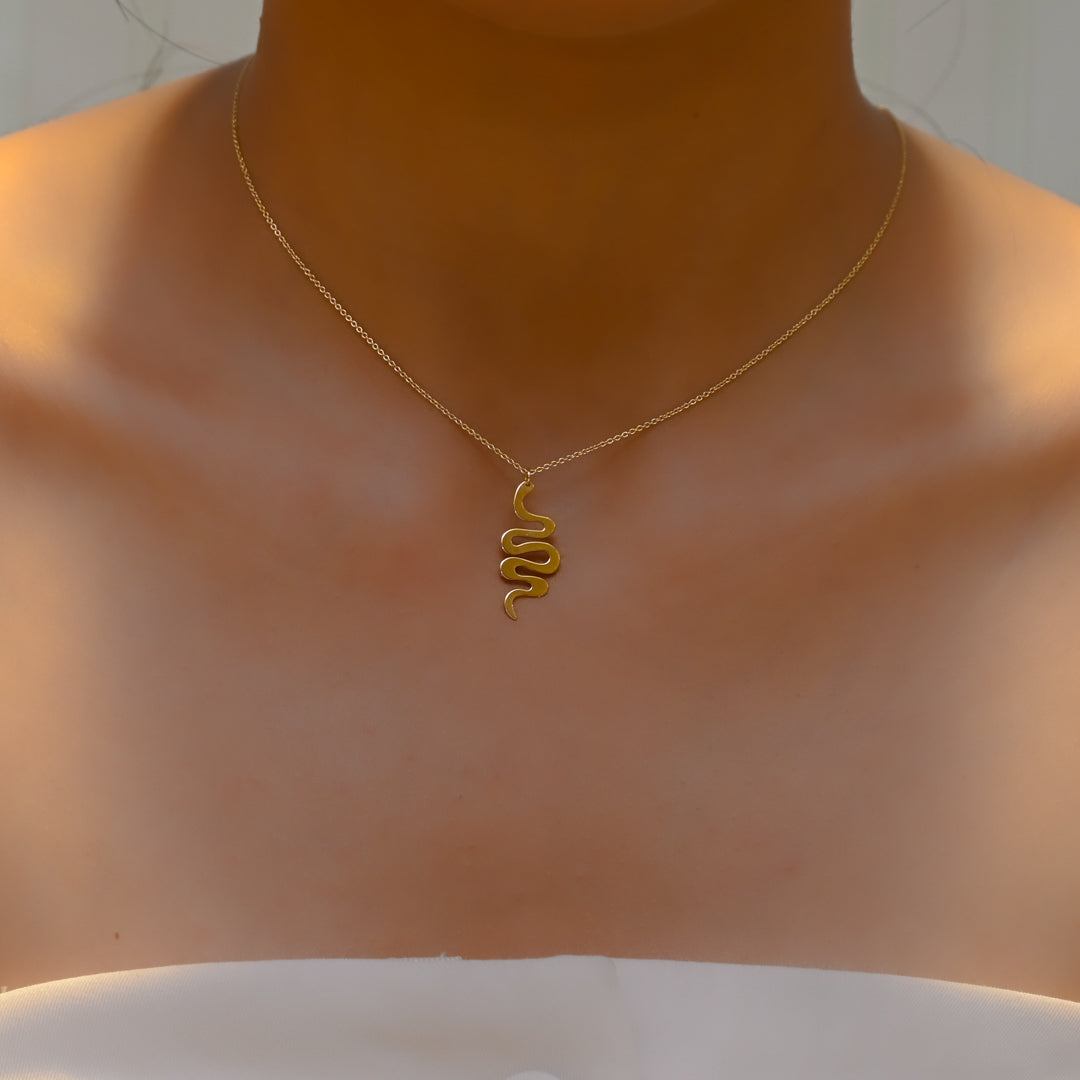 Take a risk and embrace your adventurous spirit with our Little Flat Snake Gold Necklace. This bold and daring accessory will add a touch of danger and excitement to any outfit. Make a statement and stand out from the crowd with this unique and eye-catching piece.