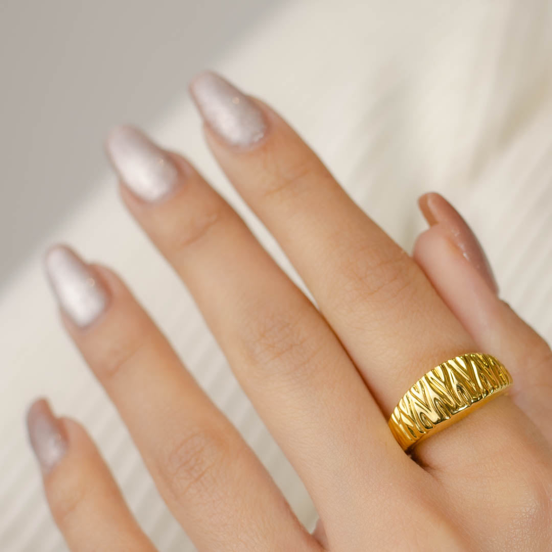 Add a touch of adventure to your style with the Little Textured Gold Ring. This bold piece features a textured design that symbolizes taking risks and stepping outside of your comfort zone. Wear it as a reminder to embrace challenges and conquer them with confidence.